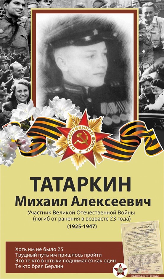 Татаркин Михаил Алексеевич1925-1947ггЗвание: мл.сержант в РККА с 01.1943.